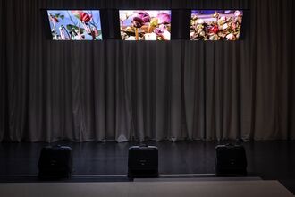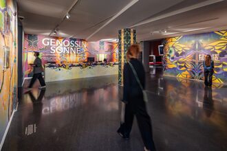 Die Ausstellung Genossin Sonne entstand 2024 auf Einladung von Milo Rau, Intendant der Wiener Festwochen, als eine Kooperation zwischen der Kunsthalle Wien und den Wiener Festwochen | Freie Republik Wien. 2025 kommt Genossin Sonne nun in erweiterter Form und auf doppelt so großer Ausstellungsfläche in den HMKV Hartware MedienKunstVerein.