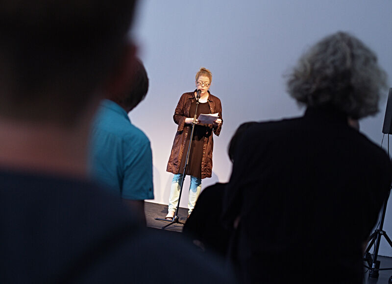 Dr. Sabine Maria Schmidt, Kuratorin der Ausstellung in der Kunsthalle Tübingen, gibt Einblick in das Werk von Korps/Löffler und führt durch die Ausstellung.