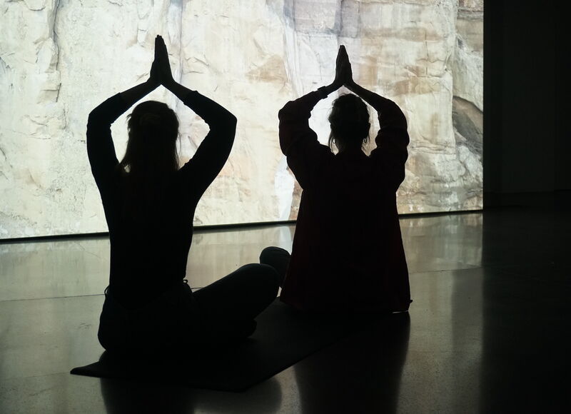 In the context of the exhibition Pranayama Typhoon Soft Parts Wing Flap Fin by the British artist Fiona Banner aka The Vanity Press, the HMKV offers a yoga evening with teacher Lioba Sombetzki as part of the "Kleiner Freitag".