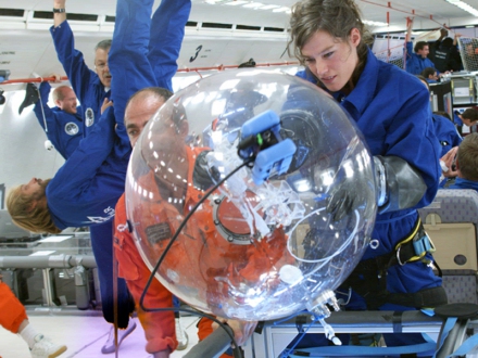 Fig. from top to bottom: Agnes Meyer-Brandis working in microgravity, CCS Experiment 2007 // Fireball with trail (Belgien 2004), ERFM Picture // Thomas Grau while finding the small but important meteorite on the island Lolland, March 2009 // Investigation of the meteorite impact crater, Agnes Meyer-Brandis, Jekaterinburg, Russia, 2009