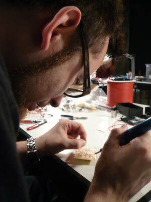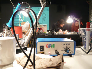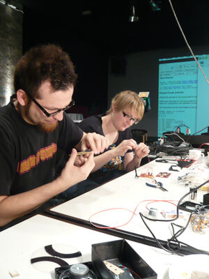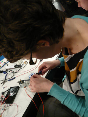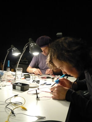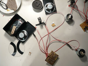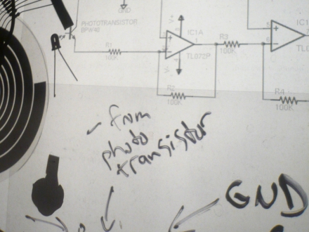 The Tonewheels workshop will provide an introduction to simple techniques of optical synthesis using overhead projectors, transparencies, motors, lasers, LEDs, simple integrated circuit chips, photoresistors, phototransistors, and photodiodes. It will require no previous knowledge of electronics to take part. Participants will make simple circuits to turn light directly into sound and drive motors which can spin or move transparencies over these circuits. They will also have an opportunity to design sound-producing transparencies, either on the computer using Inkscape or similar drawing software, or by hand using ink pens.