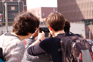 Video Walk is always about multiple perspectives and realities. In this workshop by artists Wittenborn and Skowronek, scenes are created in the urban space, recorded with a video camera and then developed into a tour for visitors. The resulting city tour can be followed through the city by visitors using a tablet. The visitor taking the city tour with the video, gets to experience the urban space on two different levels. Your own walk through the city is mixed with the recorded scenes and experiences displayed in the video.
