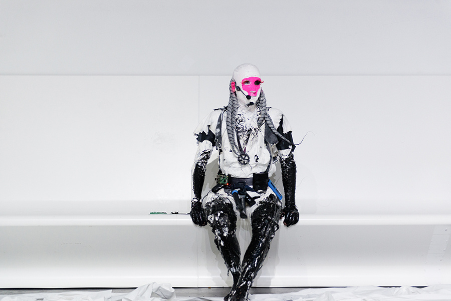 Image credit: Transformella malor [fed and cared for by JP Raether], Transformalor Reprodukte [4.4.6.3], performance view, Stedelijk Museum, Amsterdam 2017, Photo: Fabian Landewee.