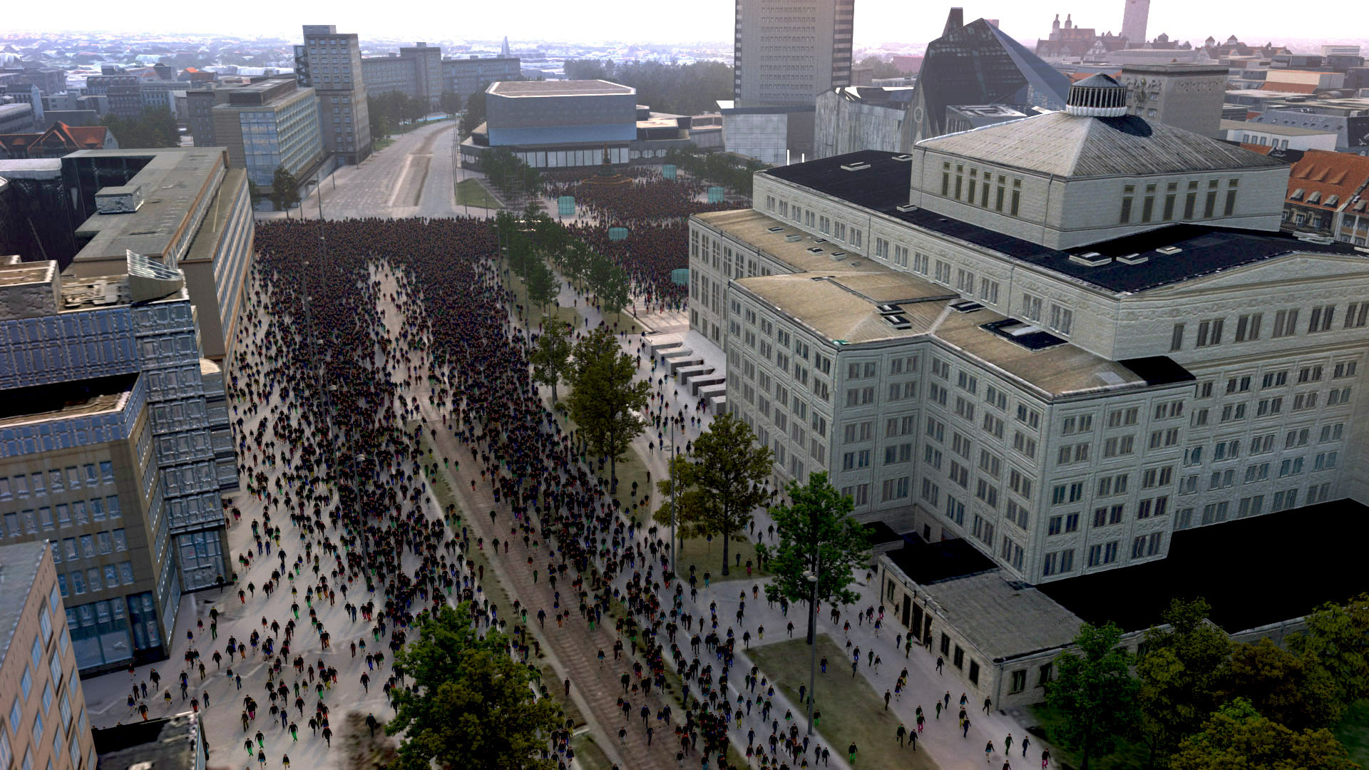 Die Montagsdemonstrationen in Ostdeutschland 1989 bis 1991 waren eine Reihe friedlicher politischer Proteste gegen die Regierung der Deutschen Demokratischen Republik (DDR), die jeden Montagabend stattfanden. 70.001 ist eine spekulative Sicht auf die Ereignisse von 1989 aus heutiger Sicht. In einer Computeranimation wird Leipzig simuliert, während sich Hunderttausende von sogenannten digitalen Agenten entlang des Innenstadtrings bewegen. Die Menge schwillt ständig an, bis der kontinuierliche Fluss der Demonstranten sich selbst gegenübersteht. Begleitet wird die Animation von Interviews mit Zeitzeugen und Diskussionen über digitale Kultur.