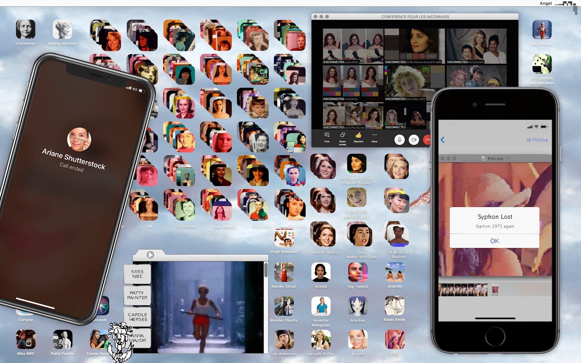 In Pique Nique pour les Inconnues betrachtet Menkman die Art und Weise, in der die Geschichte der Technologie durch Standardisierung definiert wurde, insbesondere durch die Verwendung von Farbtestkarten für die Bildverarbeitung. Das Werk präsentiert „les Inconnues“ - unbekannte Frauen, deren Bilder mit der Geschichte der Bildverarbeitung verbunden sind. In dieser Arbeit erhalten Testkarten, Bots, virtuelle Assistent*innen, Stockfotos und andere eine Stimme, können aber ihre Persönlichkeit nicht zurückgewinnen. In dieser Arbeit wird der*die Betrachter*in von der Vertrautheit dieser digitalen Gespenster heimgesucht und gleichzeitig in eine unheimliche Erfahrung eingeweiht, wenn die historisch stummen Bilder zum ersten Mal sprechen. (RM)
