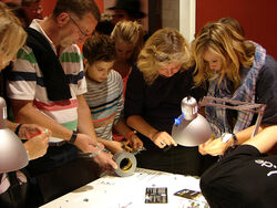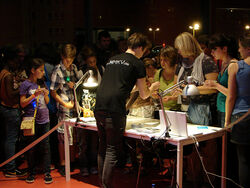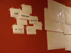 LED-Throwie-Aktion: An magnetischen Gegenständen und an den umliegenden Bauzäunen können Besucher leuchtende Nachrichten mit LED-Throwies hinterlassen. Kurze Clips zeigen LED-Throwie-Aktionen aus der ganzen Welt.