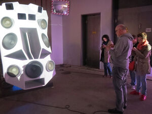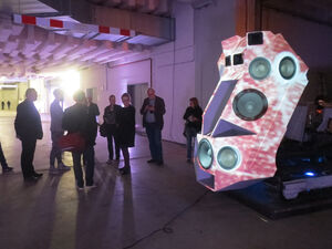 Ein besonderes Highlight des Abends ist die Begegnung mit dem Berliner Künstler Nik Nowak, der in der Garage des Dortmunder U seinen Soundpanzer für eine Performance am Folgeabend aufbaut. 1,5 Tonnen, 4.000 Watt, 13 Lautsprecher und 2 Kettenlaufwerke – der Künstler erklärt seine Faszination für die Ästhetik von Panzerfahrzeugen und seine Leidenschaft für den Sound. Im Anschluss daran steht Nik Nowak für eine lebendige Diskussion zur Verfügung.