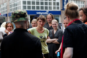 Heath Bunting (*1966) emerged from the 1980s committed to building open/democratic communication systems and social contexts. He came from the street up, passing through and often revisiting graffiti, performance, intervention, pirate radio, fax/ mail art and BBS systems to become an active participant in the explosion of the internet. He has produced many internet projects, some highly recognized, and has helped form a strong context for the practice of net.art. He has ventured into the field of genetics proclaiming it to be the next »new media«, and is also developing work in the area of physical network performance. His main ambition is to find a way to give it all up and live outside as God intended (Quelle: The Wonderful World of irational.org, Frankfurt am Main: Revolver 2006, S. 60).