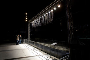 Die Installation des Künstlers Julius Popp ist im Rahmen der Ausstellung HIS MASTER'S VOICE: Von Stimme und Sprache zwischen dem 25. Juni und 7. Juli auf dem Vorplatz des Dortmunder U zu sehen.