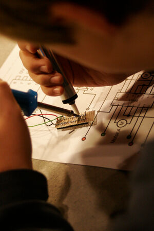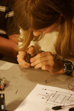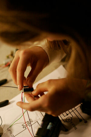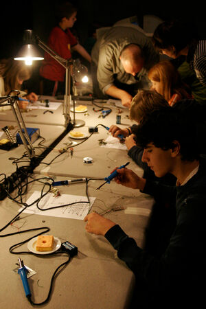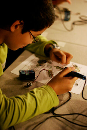 In diesem zweitägigen Workshop für Mädchen und Jungen, unter der Leitung des Berliner Medienkünstlers Karl Heinz Jeron, steigst Du in die Robotertechnik ein und kreierst Deine selbst programmierte kleine Maschine. Am ersten Tag wird gelötet, bevor am zweiten Tag der Computer zum Einsatz kommt.