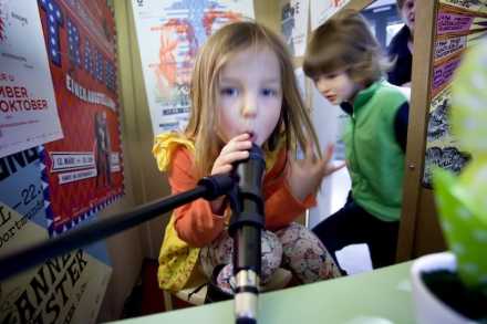 Im HMKV öffnet das HMKV Aufnahmestudio seine Pforten. Hier können Kinder und Jugendliche mit der eigenen Stimme experimentieren, sie mit Mickey-Mouse oder Monster-Effekten verfremden und die anderen Besucher mit komischen oder gruseligen Botschaften überraschen. Außerdem sind kleine Besucher eingeladen, mit der Kinderrallye spielerisch die Ausstellung HIS MASTER’S VOICE kennen zu lernen.