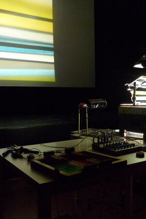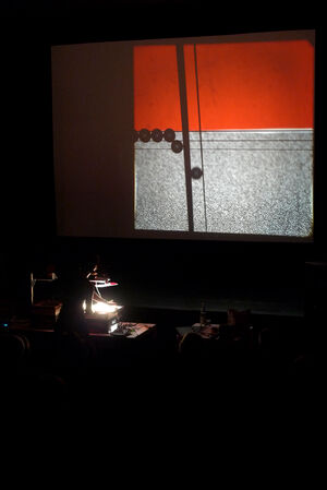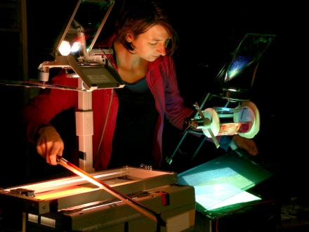 Audiovisuelle Performance mit zwei Overheadprojektoren. Präsentation der NRW Medienkunststipendiatin 2010 Tina Tonagel