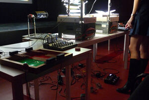 Die Künstlerin Tina Tonagel (Köln) entwickelt seit einigen Jahren experimentelle Arbeiten mit Overheadprojektoren. Ausgehend von zunächst rein visuellen Installationen, bei denen kinetische Aufbauten auf den Projektoren Bilder in Echtzeit erzeugen, ist die Künstlerin dazu übergegangen, diese raumbezogenen Installationen durch Klangelemente zu erweitern. Tina Tonagels „Himalaya-Variations“ ist eine audiovisuelle Performance mit zwei Overheadprojektoren. Auf die Auflageflächen der Projektoren werden selbstgebaute Klangerzeuger gelegt, diese Instrumente werden live gespielt und in Echtzeit visualisiert. So entsteht harmonische, experimentelle Musik, die mit den sich bewegenden projizierten Bildern korrespondiert.