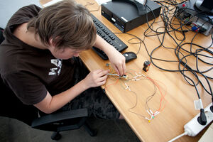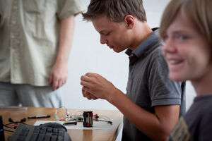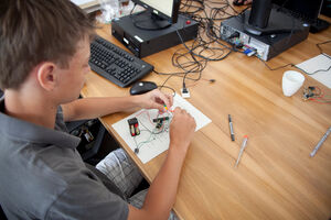 Natürlich geht es nicht darum festzulegen, welche Form oder Farbe sie bekommen soll. Vielmehr wird dieser Workshop genügend Anleitung geben, um im Anschluss auch ein eigenes Licht programmieren zu können. Dieses kann aus einer oder mehreren Lichtquellen bestehen, die sich auch in ihrer Helligkeit verändern lassen, entweder durch Programmierung oder durch ein Steuerungselement wie einen Schalter oder Drehknopf. Zudem wird erklärt, wie man aus Rot, Grün und Blau Farben mischen kann, um den Raum auch mehrfarbig zu erhellen.