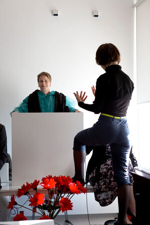 Unsere Welt ist eine Welt der Bilder, zunehmend eine Welt des Videos. Im Internet spiegelt und gestaltet sich diese Welt in seinem inoffiziellen Zentrum YouTube. Das Fernsehen und der Film machen den Menschen zu passiven Betrachtern. YouTube bietet mehr, und YouPrompt geht noch einen Schritt weiter, indem es dazu auffordert, sich mit eigenen Beiträgen intensiver zu involvieren. Ein Phänomen, das bei anthropologischen Untersuchungen von YouTube auffällt, ist das Nachahmen von Videos. YouPrompt greift diesen Trend auf und verleiht ihm mit einer eigenen Plattform ein neues Gesicht. Mit versierten Werkzeugen wie einem Archiv von transkribierten Videos, einer Onlinesoftware und einem Teleprompterbausatz unterstützt YouPrompt das engagierte Nachstellen von YouTube-Videos. Um dieser Herausforderung zu begegnen, wählt der Teilnehmer eine Figur der Medienwelt oder er sucht sich ein Thema: eine Rede, ein Interview, eine Präsentation. Er setzt sich inhaltlich mit diesem Video auseinander und interpretiert es neu. Er reagiert dabei auf seine Video-Vorlage – eine Vorlage, die einem späteren Betrachter vielleicht schon bekannt ist. Der Interpret nimmt ein neues Video auf, in dem er in die Rolle „seines“ Protagonisten schlüpft. YouPrompt konzentriert sich dabei vorrangig auf Reden. Die Verkörperung von Autorität und die Aneignung von Rhetorik mit den Werkzeugen der Unterhaltungs- und Spaßgesellschaft geben dabei wichtige Impulse für eine zeitgemäße Politisierung des „User Generated Content“.